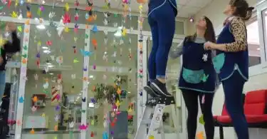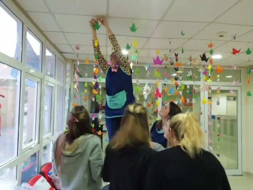 El jardín Salta Violeta instaló mil grullas en el Hospital para agasajar a los niños en su día