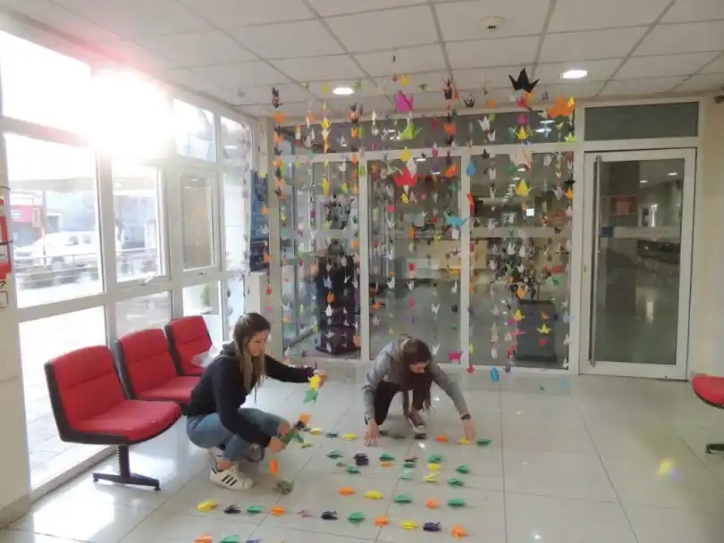 La comunidad educativa se comprometió con el proyecto y, en sólo tres días, reunió las mil grullas. La intención fue transmitir un mensaje de paz y buenos augurios. Las autoridades, el personal y los pacientes del Hospital de Niños recibieron con afecto la inusual propuesta.