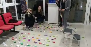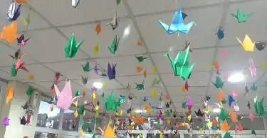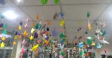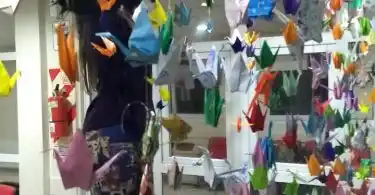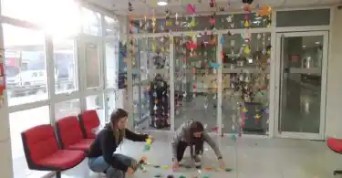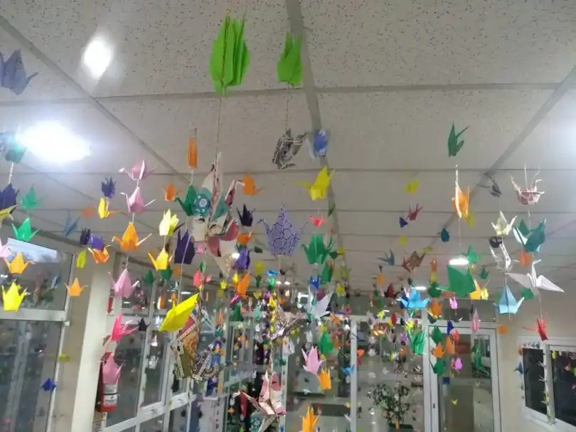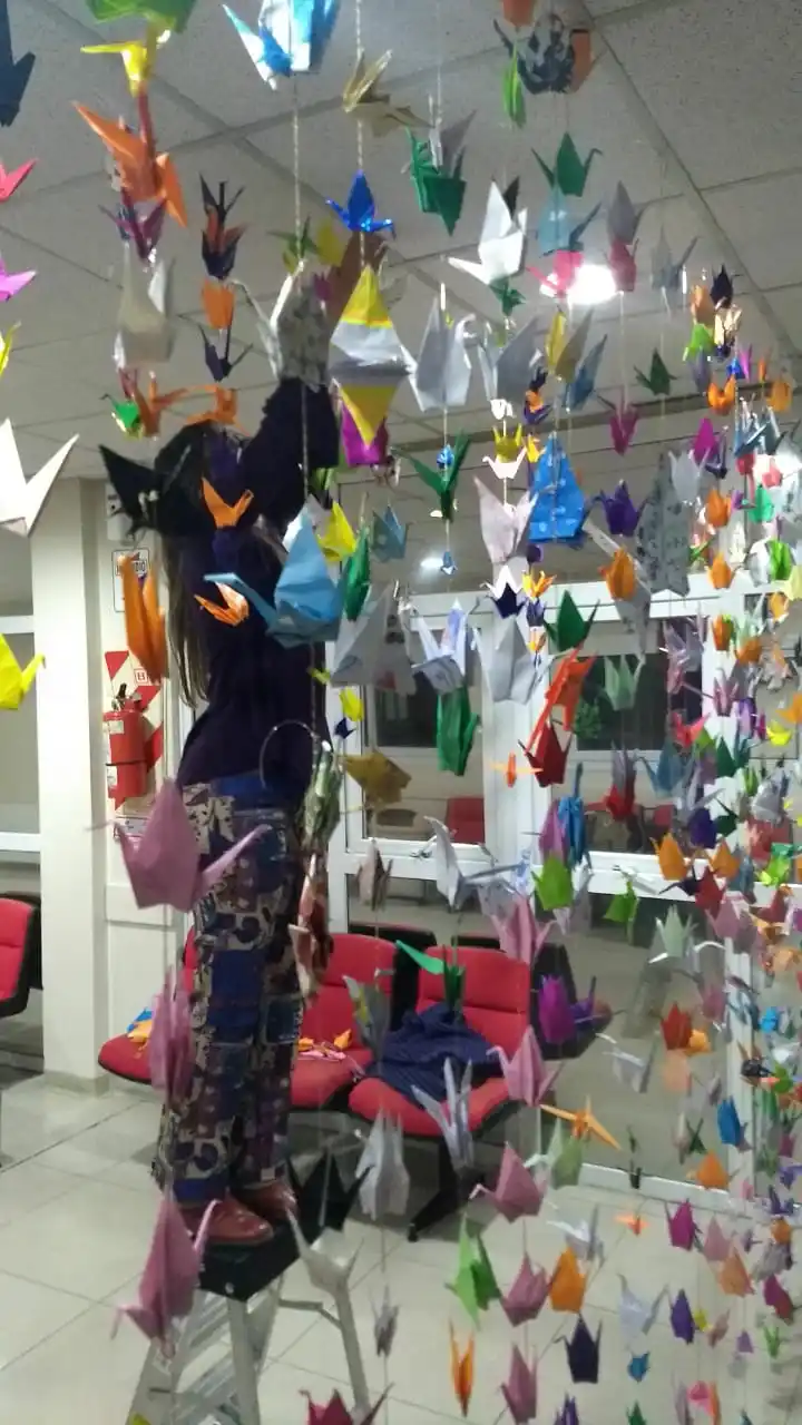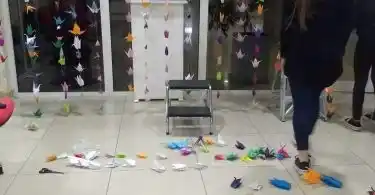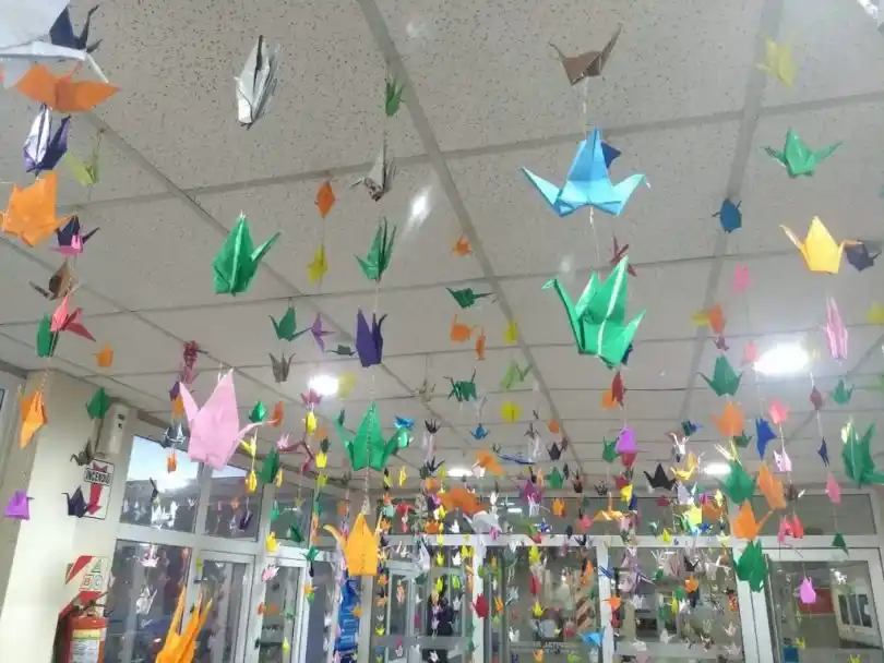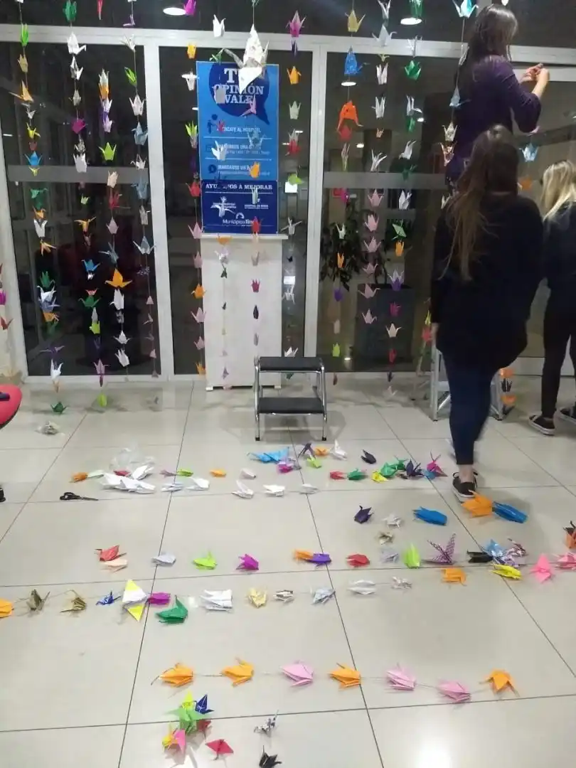 Para cumplir con el objetivo de las mil grullas de papel, confeccionadas con la técnica origami, pidieron colaboración de la comunidad y consiguieron, en sólo tres días, llegar al número que demandaba la instalación.