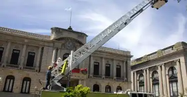 “El vehículo escalera es totalmente operativo ante un incendio, porque más allá del rescate que se pueda llegar a hacer, se la puede utilizar como medio de extinción, para eso necesitamos una autobomba con características especiales que permita expulsar agua a tanta altura con la presión y el caudal necesarios”, refirió, en alusión a la unidad complementaria –el autobomba- que sirve para satisfacer esta necesidad.