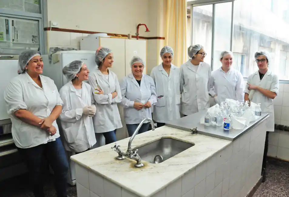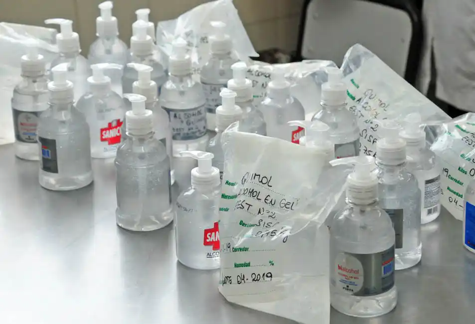 Así, a lo largo del año, los futuros técnicos elaboraron cuatro lotes del producto antiséptico en una tarea acompañada por la docente del laboratorio de química analítica y coordinada por una farmacéutica del Sistema Integrado de Salud Pública.
