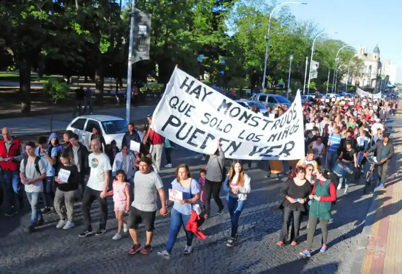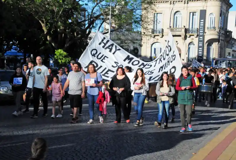 Tras la consigna “Hay monstruos que sólo los niños pueden ver”, los manifestantes se encolumnaron y marcharon por las calles céntricas de la ciudad.