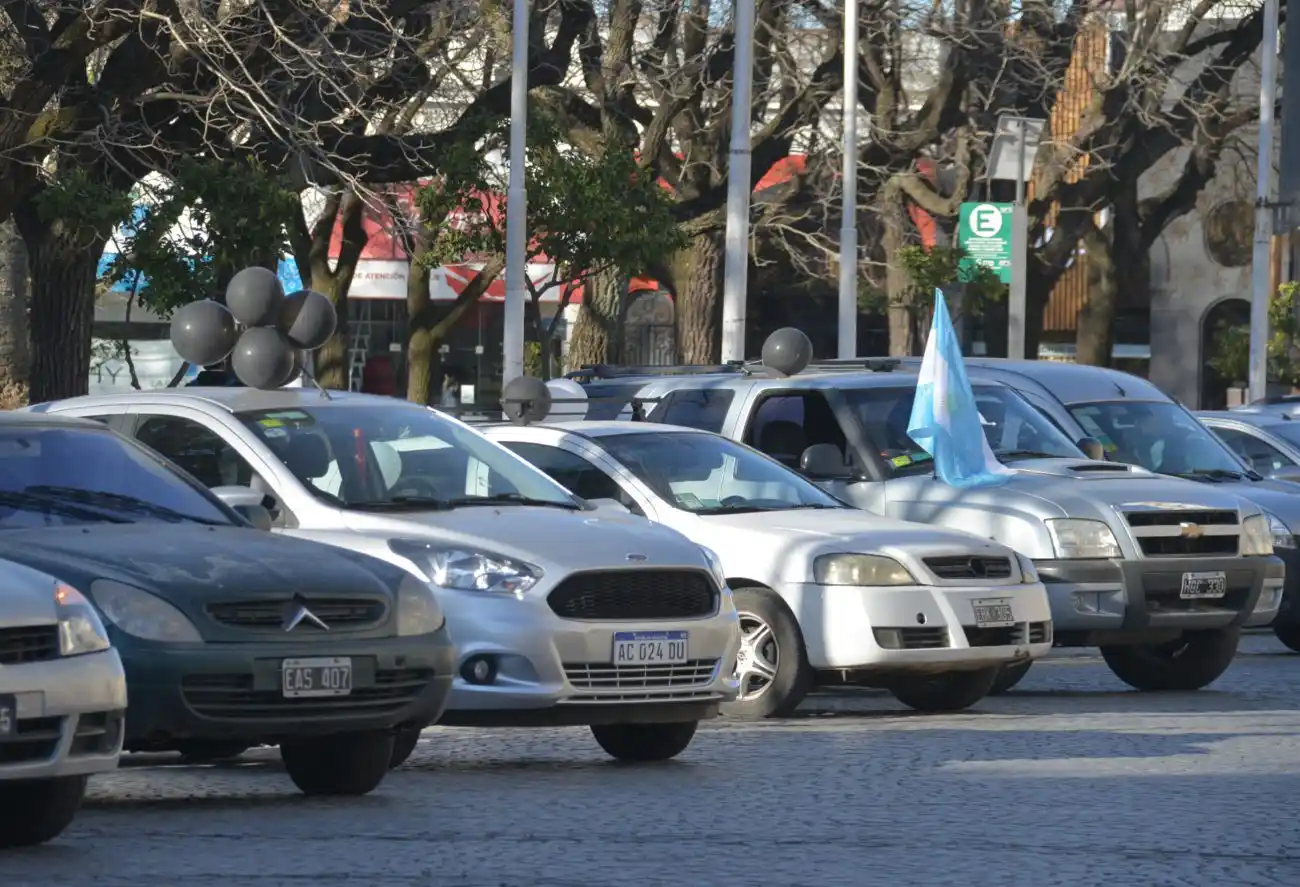 Las bocinas se hicieron oír y los vehículos fueron estacionando en la Plaza. Luego, los enfermeros se ubicaron en la explanada municipal sosteniendo una cinta negra que rodeó la fachada municipal, junto al lema “Enfermería está de luto”.