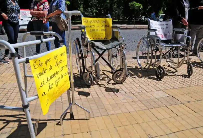 Accedé a las últimas noticias desde tu email“No nos prohíban lo único que tenemos, nuestra familia” y “hasta el último suspiro tengo mis derechos”, fueron solo alguno de los mensajes plasmados en los carteles que fijaron en las sillas de ruedas y andadores que representaron al sector. Sin dudas, el que mayor riesgo corre en el marco de la pandemia por el Covid-19, pero también el que más necesita de consideración.