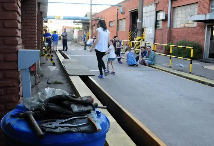 Al ingresar a la planta industrial, varios grupos de trabajadores toman mate, charlan, piensan, resisten. Las familias acompañan y están ahí firmes. Tienen provisiones preparadas para permanecer varios días y constantemente se acercan vecinos a llevar más. El apoyo de la sociedad es incondicional, dicen, y lo agradecen.
