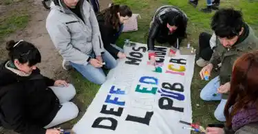Julia Corral, estudiante de la tecnicatura en Acompañante Terapéutico, fue una de las precursoras de la sentada y contó que la dinámica de la jornada se fue construyendo “sobre el momento”. Así resolvieron durante el encuentro pintar una bandera entre todos con el concepto “Defendemos la educación pública” para colgarla en el exterior y se pueda ver desde la calle. Asimismo, con la idea principal de debatir y reflexionar lo que está ocurriendo, separaron artículos de diferentes diarios relacionados con la temática, con el fin de leerlos en conjunto, hacer una puesta en común y plasmar sus conclusiones en escritos, que luego serán pegados en los pasillos de la institución. “El propósito es poder visibilizar la actividad que llevamos a cabo”, dijo.