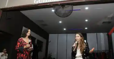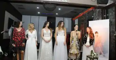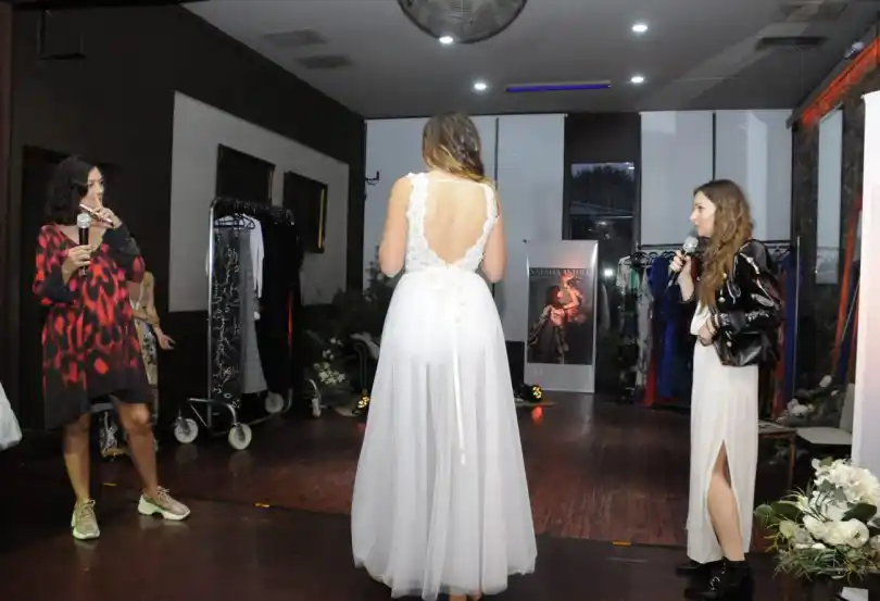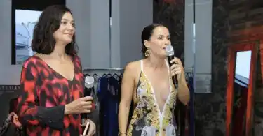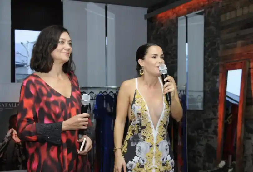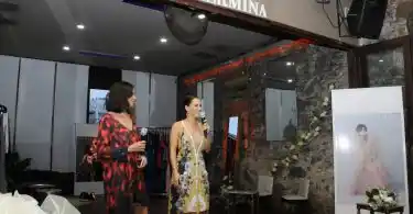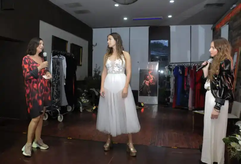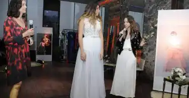 Cerca de las 18, Guillermina Balbuena dio la bienvenida a los presentes y expresó su felicidad por la compañía de Natalia Antolín para presentar la nueva colección de vestidos de fiesta y de novia.
