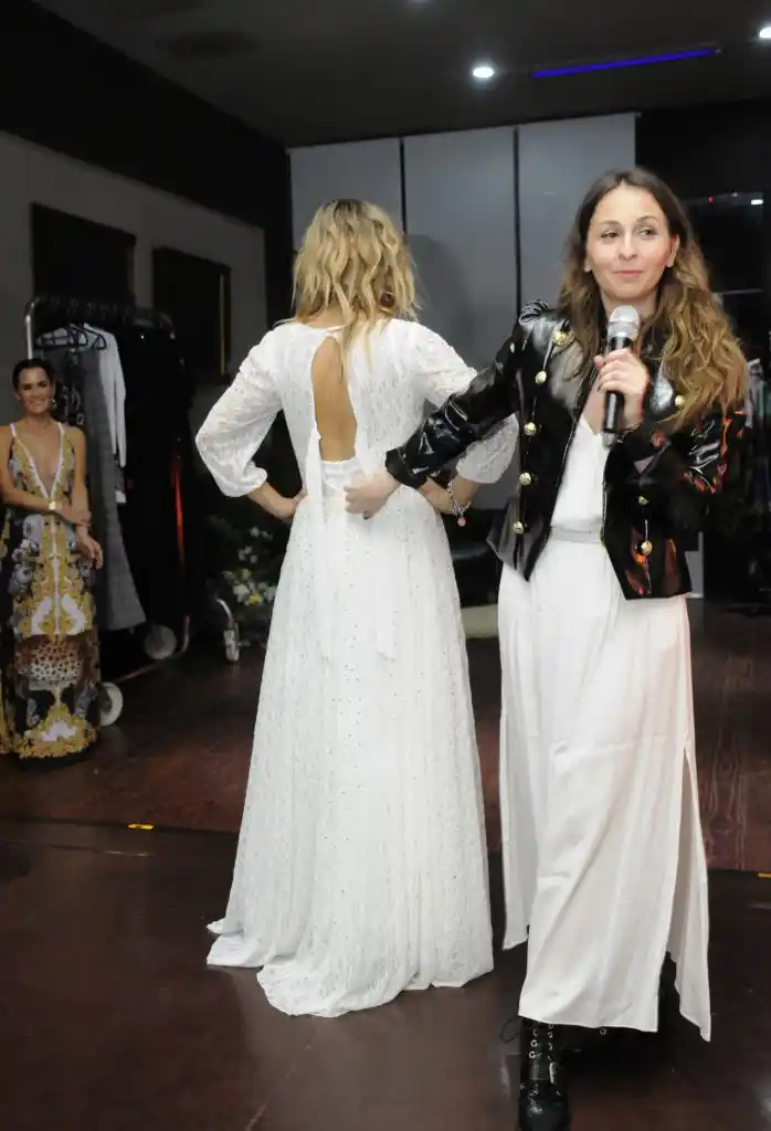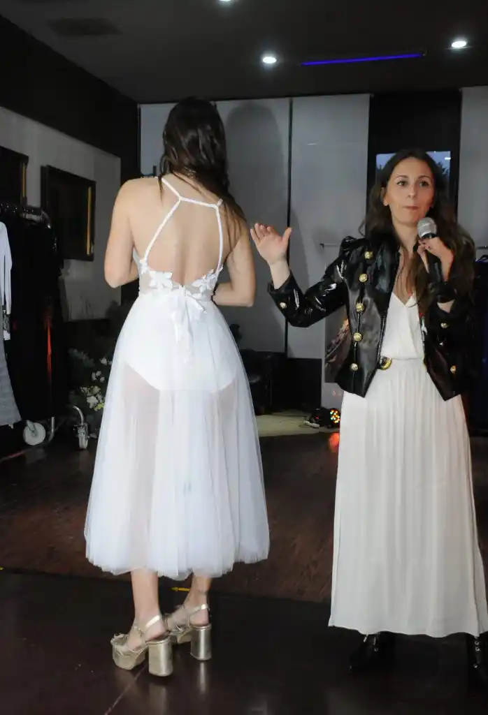 Luego, junto a su productora de moda y mano derecha, Alejandra Galanti, fue presentando uno a uno los vestidos que lucieron las modelos que desfilaron, a la vez que brindaron algunos tips útiles a la hora de elegir un vestido para un determinado evento de acuerdo al estilo y al cuerpo de cada mujer.