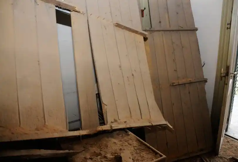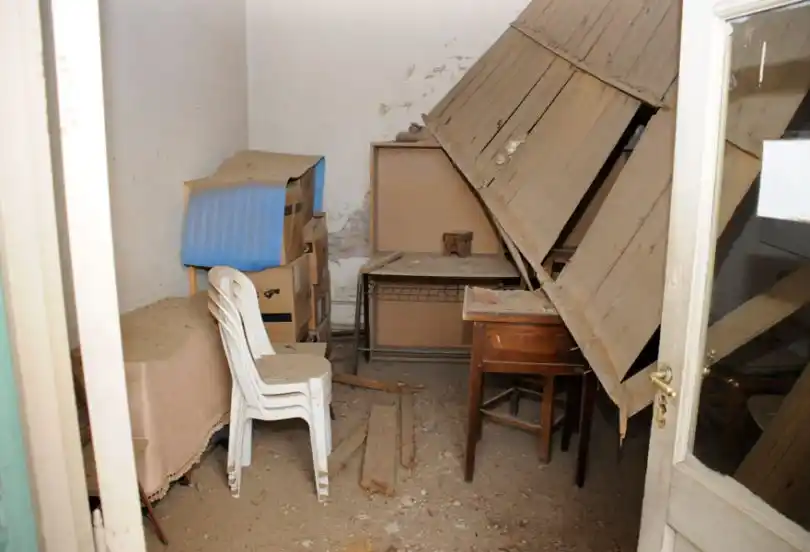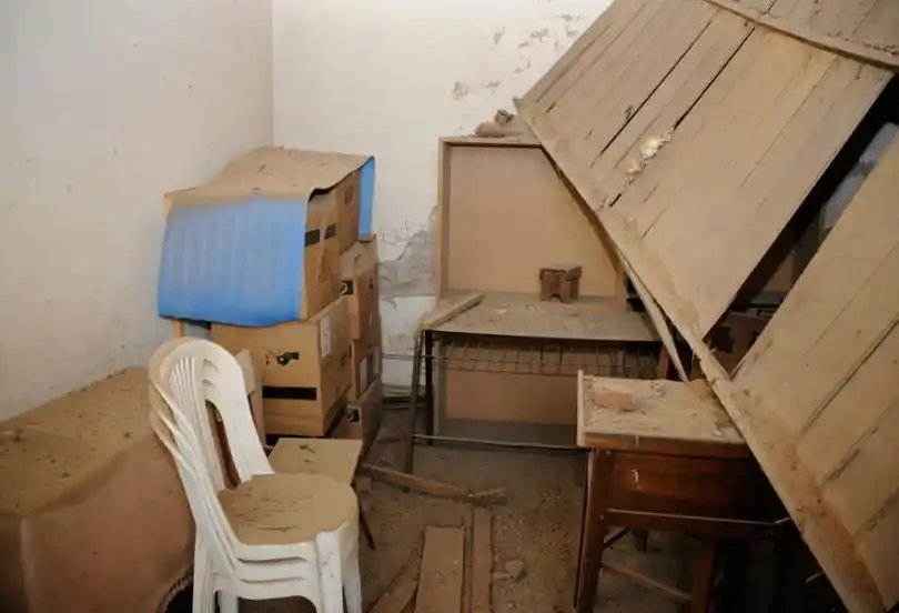 El presidente de la cooperadora, Ernesto Invernizzi, explicó que eran alrededor de las 14 cuando una portera ingresó al aula 9 y se encontró con el desolador panorama. El cielorraso en el suelo, bancos y mesas llenos de tierra y escombros.