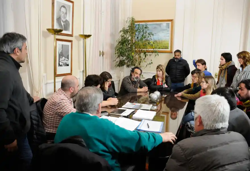A las 18.30 el intendente Miguel Lunghi y el presidente del Consejo Escolar Cristian Cisneros recibieron a un grupo de referentes de la comunidad educativa.