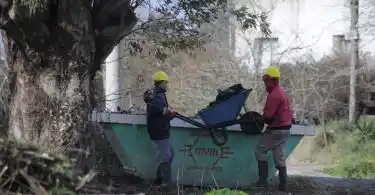 La cooperativa del Langueyú realiza tareas de limpieza en un basural clandestino en Villa Aguirre