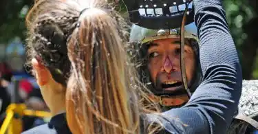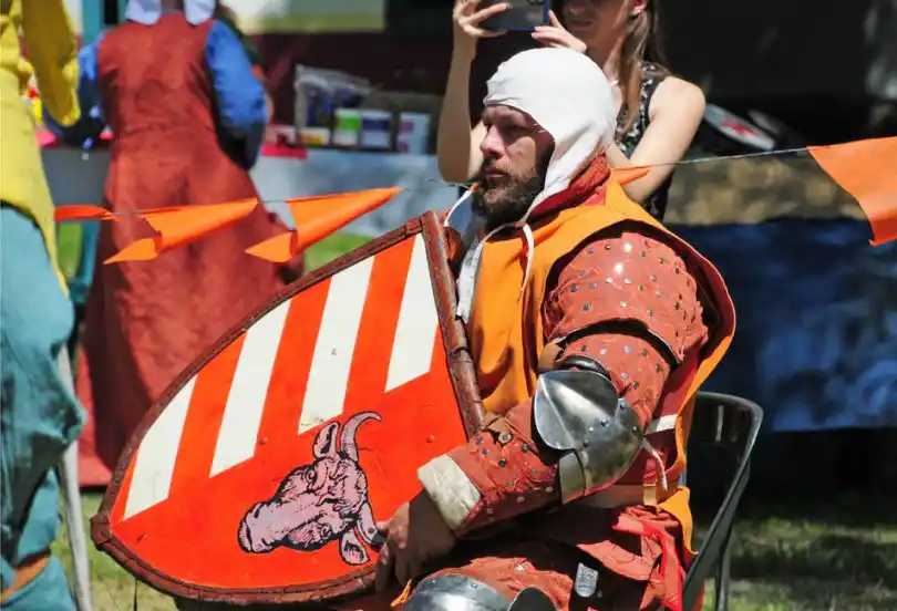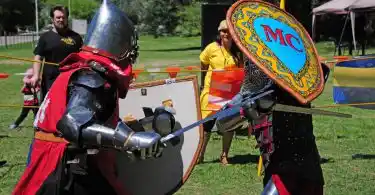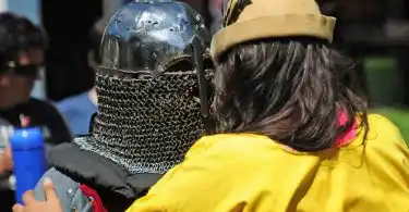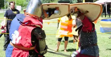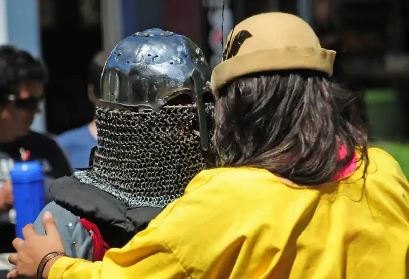 Bajo un sol radiante y abrazados por sus vestimentas reglamentarias, los luchadores hacían resonar las espadas intensamente sobre las armaduras o escudos. La postal parecía salida de una película con los choques de metales como banda sonora. En una tarde ideal para el evento, cada duelista aguardaba su turno revisando que todas las partes de su vestimenta estén como corresponde, mientras que los acompañantes y otros aficionados rondaban en área con sus trajes épicos.