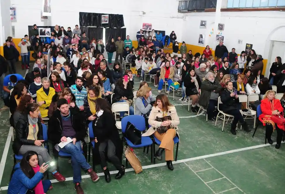 Accedé a las últimas noticias desde tu emailLa baja temperatura no se sintió en el salón repleto de gente, donde el acto inició con el izamiento de la Bandera nacional. “Un nombre condensa ideas colectivas y consolida la democracia”, enfatizaron con emoción desde la escuela, y minutos después los alumnos se encargaron de descubrir la insignia que los identificará de aquí en más.