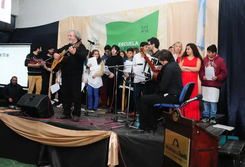 En el emotivo acto participaron no solamente la directora Florencia Mena, y otras autoridades educativas de ese establecimiento, sino que acompañaron el intendente Miguel Lunghi; el jefe de Gabinete Julio Elichiribehety; el presidente del Consejo Escolar Cristian Cisneros; la directora de Cultura Irina Taraborelli; el decano de la Facultad de Arte Mario Valiente; la flamante inspectora distrital Estela Morette; la coordinadora de Cultura de Unicén Claudia Castro y los concejales Rogelio Iparraguirre, Silvia Nosei, Darío Méndez y María Eugenia Poumé.
