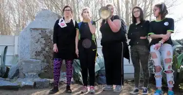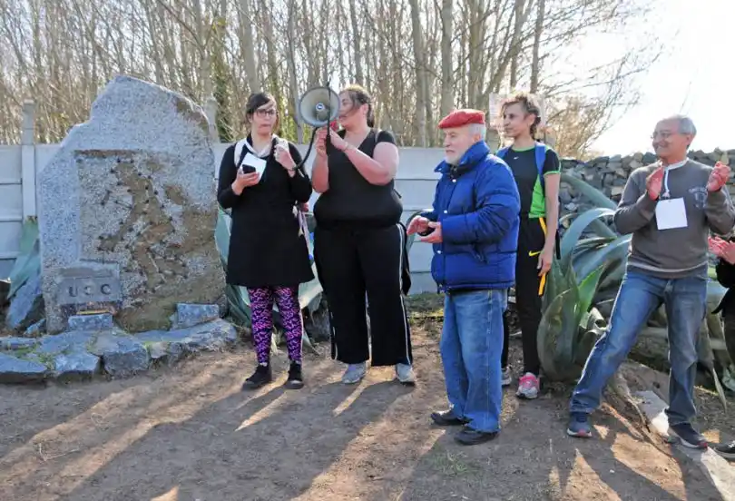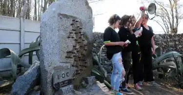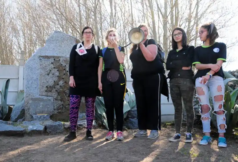 El relato de las estudiantes atravesó los diferentes periodos históricos. En medio del discurso, las jóvenes detallaron que la cantera atrajo a numerosos inmigrantes ávidos de “hacer la América” en estas tierras y forjar un destino. La llegada del tren en 1883 reconfiguró el sistema canteril y permitió que prosperara. Así fue como las explotaciones se transformaron en pequeñas comunidades con sus propias reglas. Al principio, los patrones daban comida por trabajo hasta que se estableció una moneda interna de cambio, denominada ficha o vale, que tenía grabado el nombre de la cantera