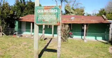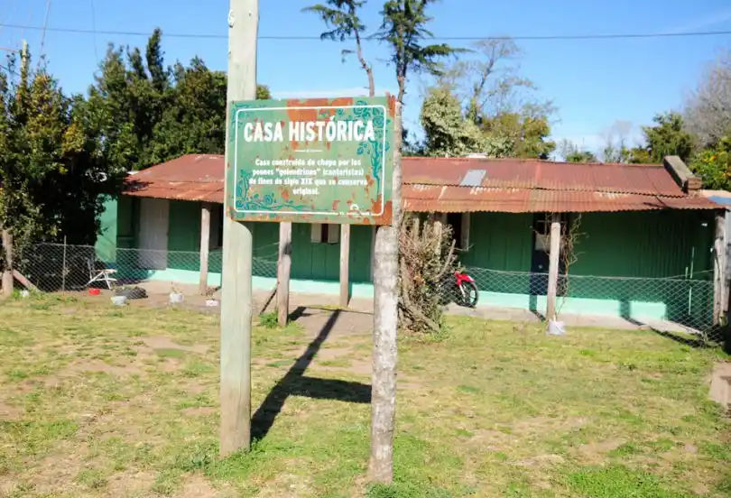 La visita guiada desembarcó, luego, en una casa histórica que se conserva en su estado original, ubicada en Basso Aguirre y Pascuzzi. Según refirieron las alumnas guías, ese tipo de construcciones eran típicas de la principios del siglo XX y constituían la vivienda de los peones golondrinas que trabajaban en las canteras. Salvo excepciones se construían en chapa y madera con techo a dos aguas, y eran fáciles de desarmar y trasladar de acuerdo a las necesidades de los trabajadores.