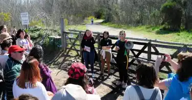 A media tarde se inició una guía turística comunitaria realizada por estudiantes de la Escuela Secundaria 16 y de la Escuela Técnica 5, y la colaboración de Analía Ríos, gestora cultural y turística. El recorrido tuvo como punto de partida la plaza y posteriormente la columna de gente se desplazó hacia el Circuito Juan Basso Aguirre, habilitado en 1954 y que dejó de funcionar hacia finales de los años 80. Ríos recordó que el público iba con sus sillas, mesas y parrillas para hacer asados, y contó que los organizadores de las carreras “tenían que pedir que los asados se armaran después porque el humo tapaba la visión y hacía chocar a los autos”.