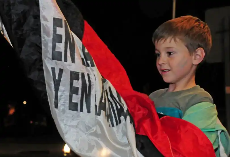 Entre bombos, redoblantes, bengalas de humo y banderas, grandes y chicos gritaron “campeón“.