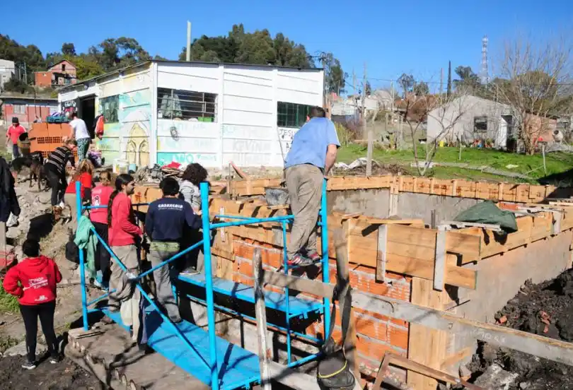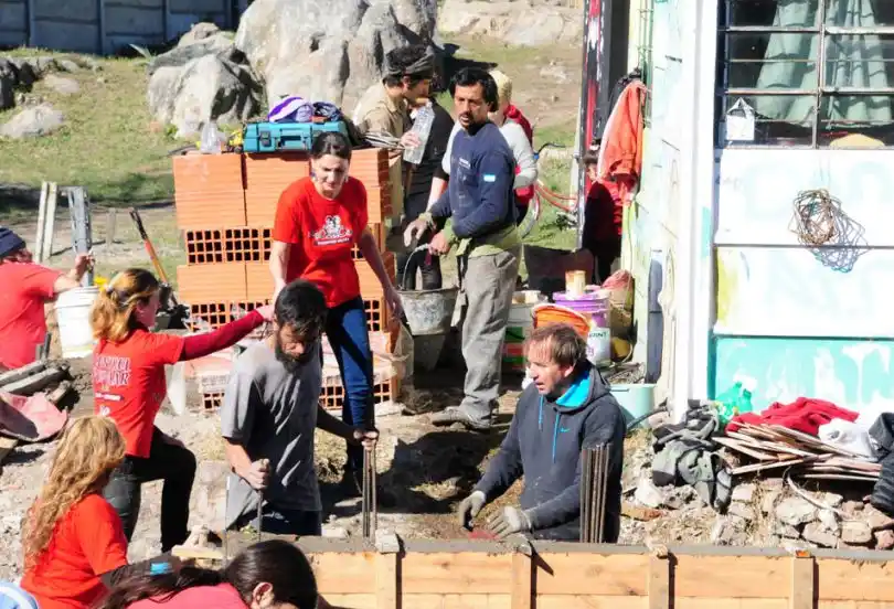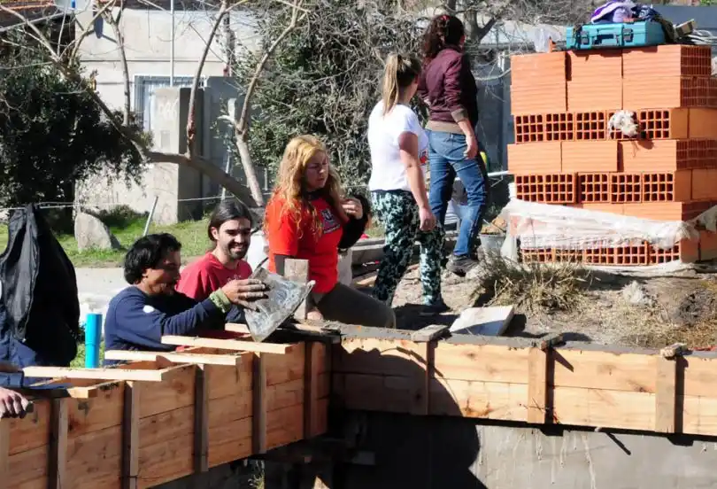 El sábado a la mañana, mientras el sol del mediodía calentaba la jornada invernal, un grupo de vecinos e integrantes de La Poderosa encabezaron un intenso día de trabajo centrado en la edificación de la mencionada casa, que se levanta gracias al trabajo voluntario y colectivo.