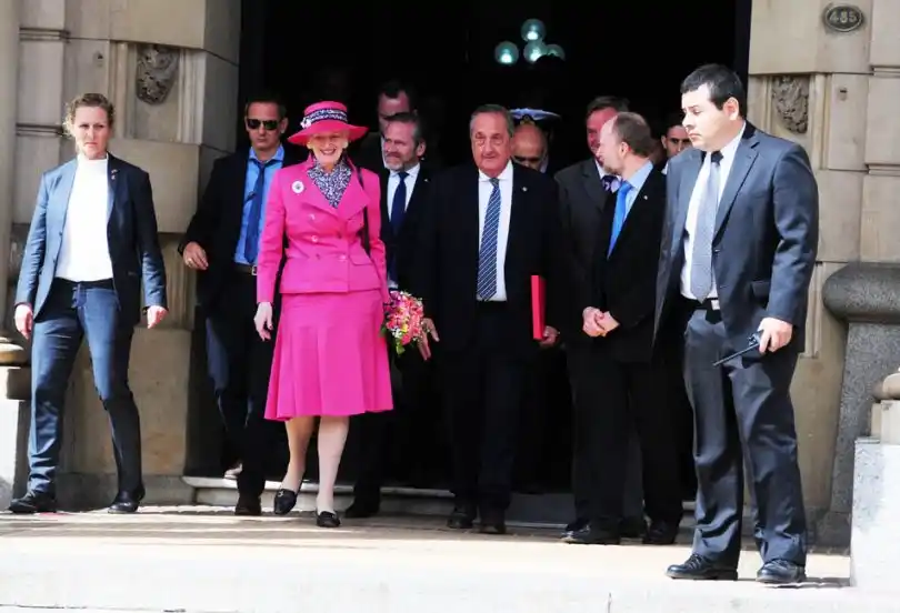 En el marco de una ajustada agenda, la Reina y su hijo, el Príncipe Federico, arribaron por unas horas a la ciudad, luego de cumplir con sus compromisos oficiales y comerciales en Buenos Aires. La comitiva real recorrió el Monumento a Juan Fugl, el Templo Danés, la Municipalidad y finalizó su maratónica jornada en una hostería local. El protocolo se cumplió sin sobresaltos y el anclaje de la visita radicó en fortalecer los lazos de amistad entre los pueblos.