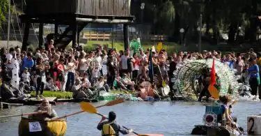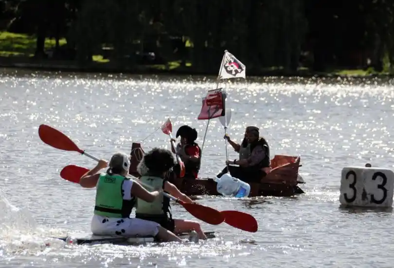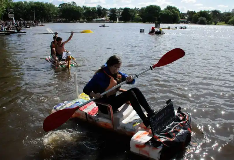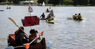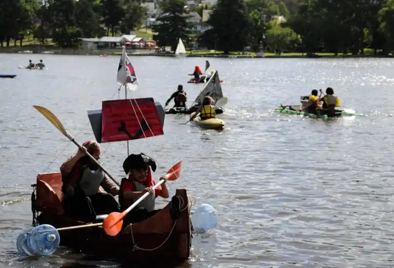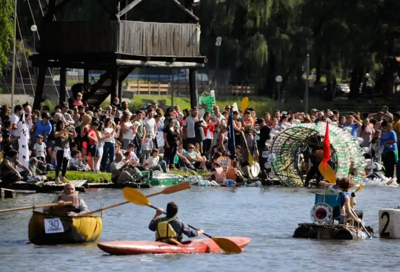 Las embarcaciones hechas con materiales reciclados se lucieron en el Lago del Fuerte