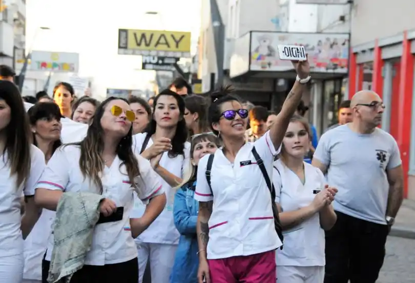 Accedé a las últimas noticias desde tu email“Una máquina puede hacer el trabajo de 50 personas corrientes, pero no hay ninguna que pueda hacer el de un enfermero”, decía la pancarta que abría paso a los cerca de 200 trabajadores de la salud que se unieron en la tarde de ayer.