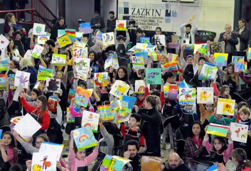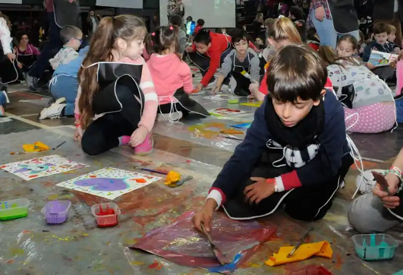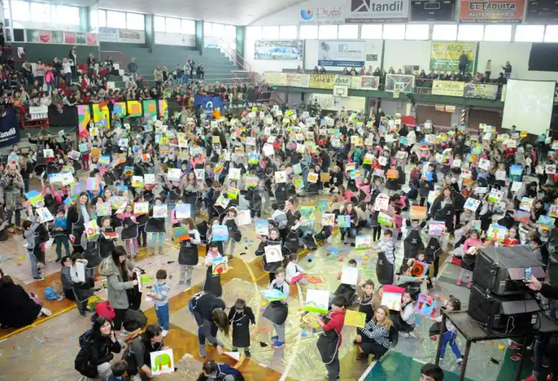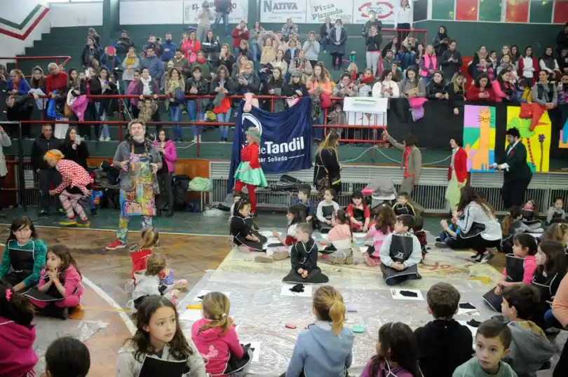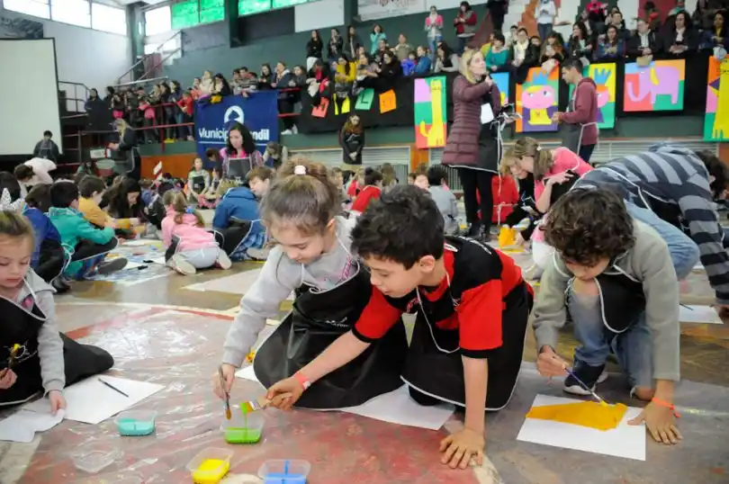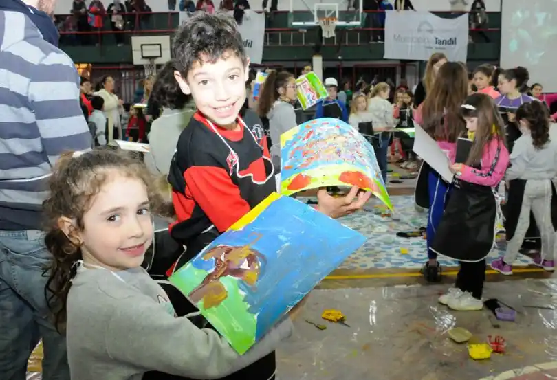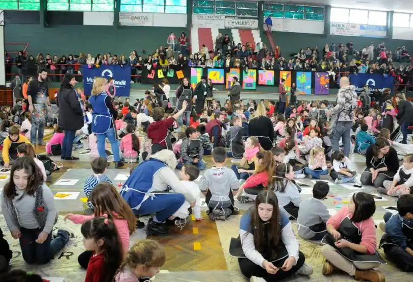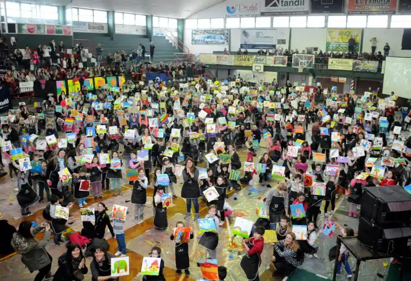 Este sábado, 500 chicos de entre 5 y 10 años llenaron de color y alegría el gimnasio del gigante de Villa Italia, para participar del taller de pintura gratuito que el artista plástico chaqueño realizó junto a su equipo con la organización del Municipio de Tandil. A fines de abril había arribado a la ciudad en el marco del programa provincial AcercArte para desarrollar una propuesta más acotada, que habilitaba el ingreso de solamente 50 chicos, razón por la cual muchos de los que quedaron afuera en ese entonces pudieron tener revancha en esta ocasión.