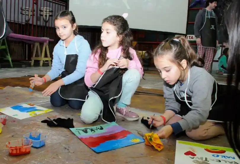 A medida que ingresaban, los chicos eran destinados a un grupo -conformado por un máximo de 10 niños- a cargo de un adulto, se les colocaba un pintorcito para evitar que mancharan su ropa y se los invitaba a sentarse junto a sus ocasionales compañeros, en el espacio donde prolijamente se habían dispuesto hojas, cazuelas con esmalte sintético al agua, pinceles y demás insumos para trabajar, todo pensado para llevaran adelante la tarea de manera grupal.