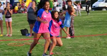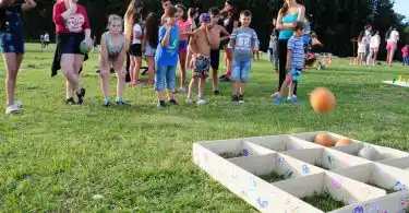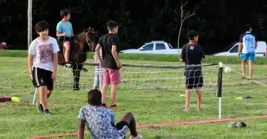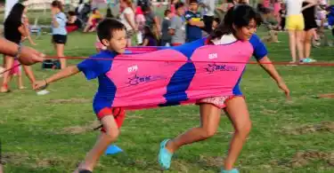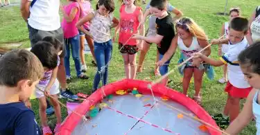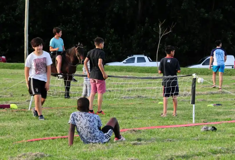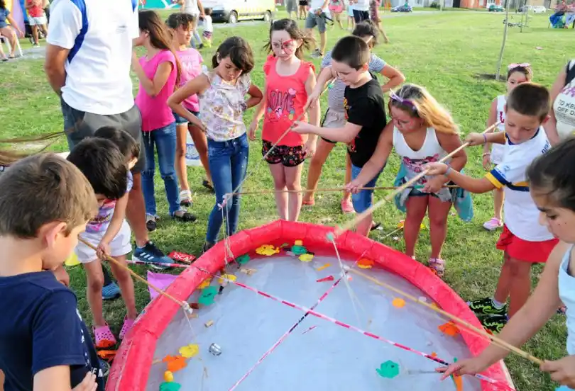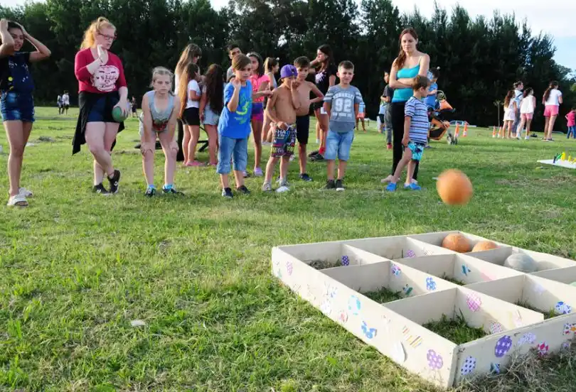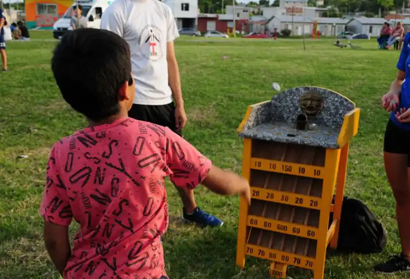 A partir de ahí, se dispuso una gran variedad de juegos, como inflables, mini hockey, dos canchas de fútbol tenis, además para los más chiquitos una pileta inflable pequeña con peces y objetos que tenían que pescar con cañas. También, dentro de las actividades, hubo distintos tipos de acertijos, como algunos fabricados con “flota flota”, otros con conos y anillos, y con cubos donde debían embocar pelotas, además del tradicional Sapo.