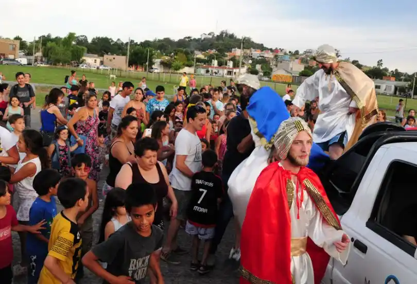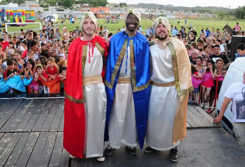 El momento más esperado para todos fue claramente la llegada de Melchor, Gaspar y Baltazar, que arribaron en una camioneta, repartiendo caramelos a mansalva. Los Reyes, figurados por chicos de la Juventud Radical, le contaron a los pequeños que tuvieron que dejar a los camellos muy lejos para que no se asustaran con el ruido y la cantidad de gente.