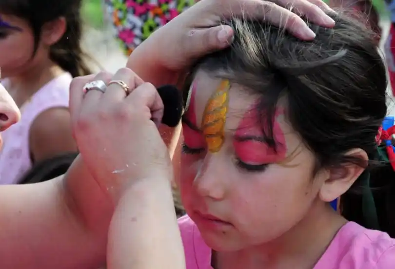 Asimismo, se realizaron juegos en parejas como carrera de encamisados, donde dos niños se ponían la misma camiseta y debían recorrer el circuito desafiando en velocidad a sus competidores. Una de las propuestas de la que casi todos fueron parte fue del maquillaje artístico, con tres expertas que recibieron a una larga fila de interesados que se decoraron el rostro con mariposas, estrellas, unicornios, arañas y corazones.