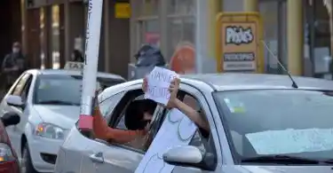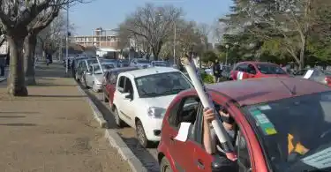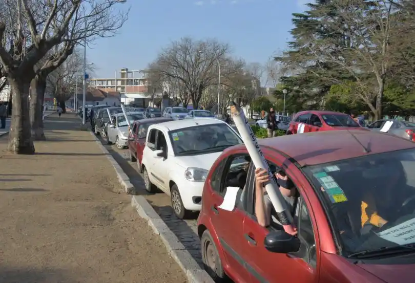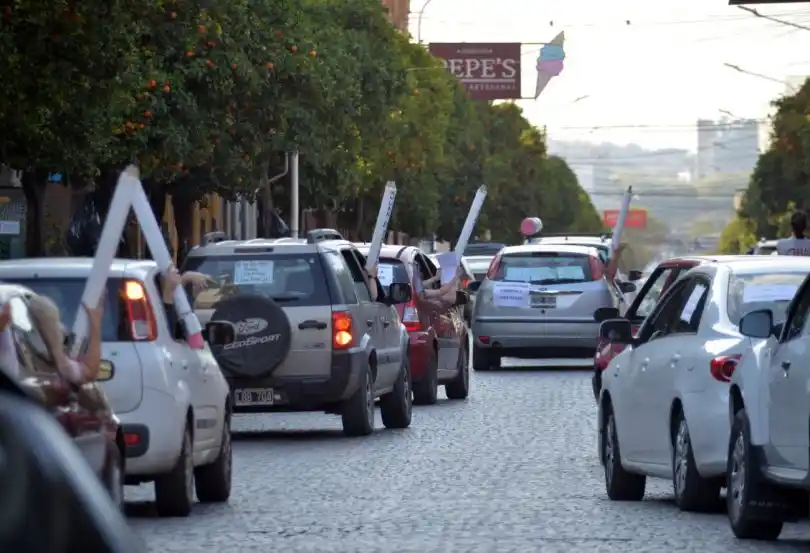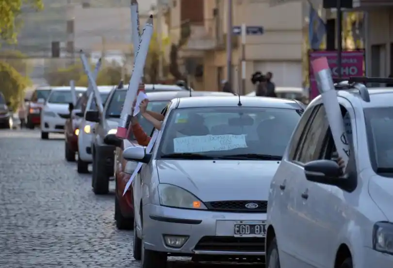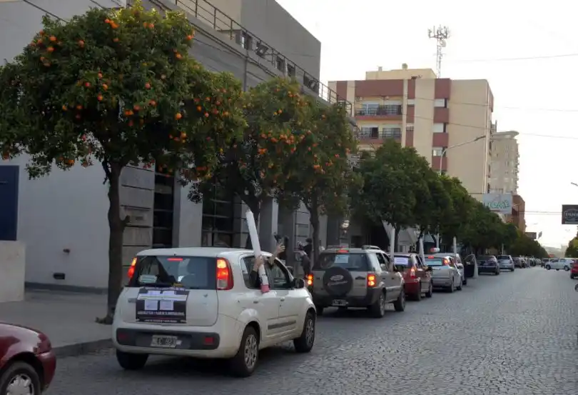 Realizaron una caravana desde la Plaza Moreno hasta el Municipio. Martín Rosso, el padre del profesor de teatro acusado de abuso sexual, manifestó preocupación porque “ya hace dos meses y medio que le otorgaron la domiciliaria y lamentablemente todavía no se hizo efectiva”.