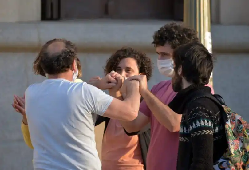 Una vez allí, con palmas y bocinazos hicieron oír el pedido de libertad para Juan Rosso. “Libertad”, “Liberen a Juan”, vociferaron.