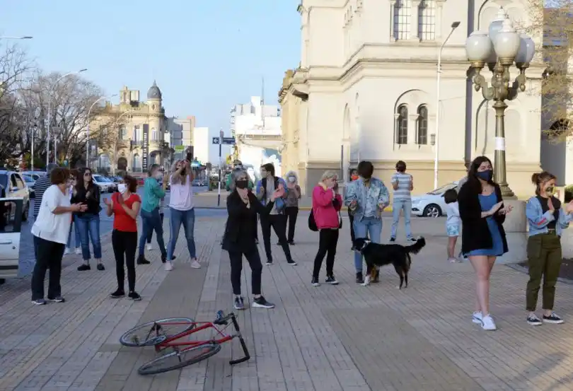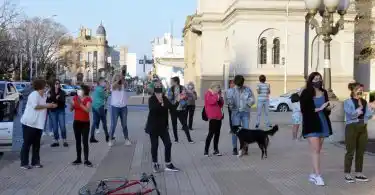 A partir de las 16.30 la Plaza Moreno, situada en Chacabuco y Constitución, congregó a un grupo de personas que en sus vehículos fueron arribando para luego realizar una caravana por las calles céntricas, reclamando la libertad de Juan Rosso, el profesor de teatro acusado de abusar sexualmente de un niño en el Jardín 901.