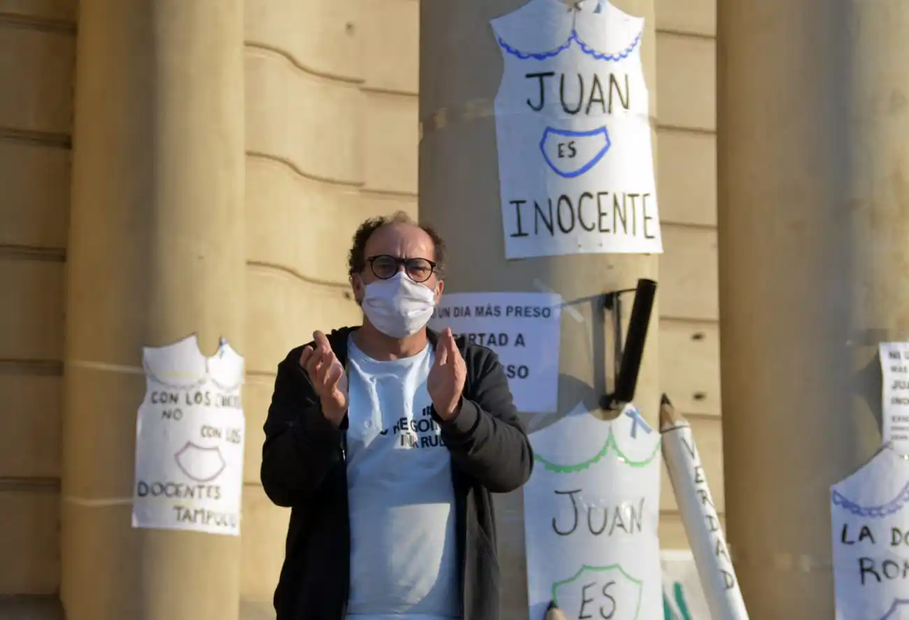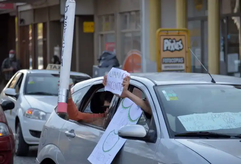“Juan sólo tuvo una clase de 30 minutos con él”, “Nosotros sí escuchamos a los niños”, “Juan es inocente y está preso”, “Libertad ya, es una causa armada”, se leía en otras pancartas de automóviles.