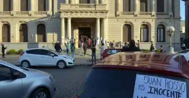 Accedé a las últimas noticias desde tu emailLa movilización comenzó en la Plaza Moreno a las 17 desde donde se dirigieron a la sede judicial, a la Jefatura Distrital de Educación, y finalmente al Municipio, donde permanecieron durante algunos minutos haciendo visible la protesta. En cada uno de eso lugares dejaron carteles y pegatinas exigieron “Libertad ya” para Juan Rosso.