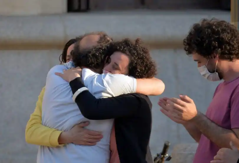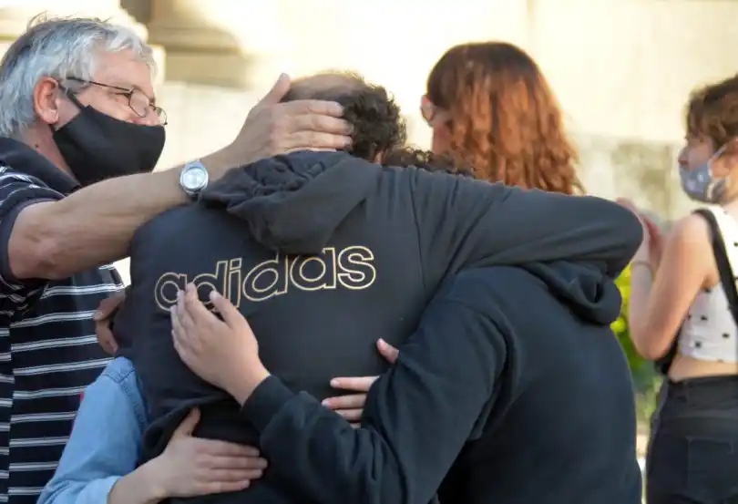 Martín Rosso, el padre del docente de teatro, se quebró y no pudo contener el llanto, considerando la difícil situación que atraviesa.
