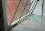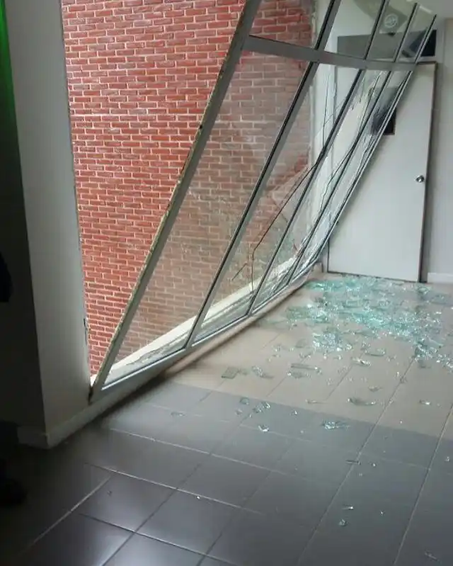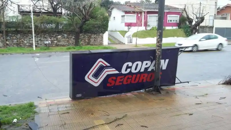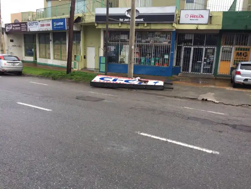 Movediza entre Vivot y De Pietri Avellaneda y Alberdi Espora al 1100, un cartel de publicidad cedió ante el viento Ventanal de la Biblioteca Central de la UNICEN