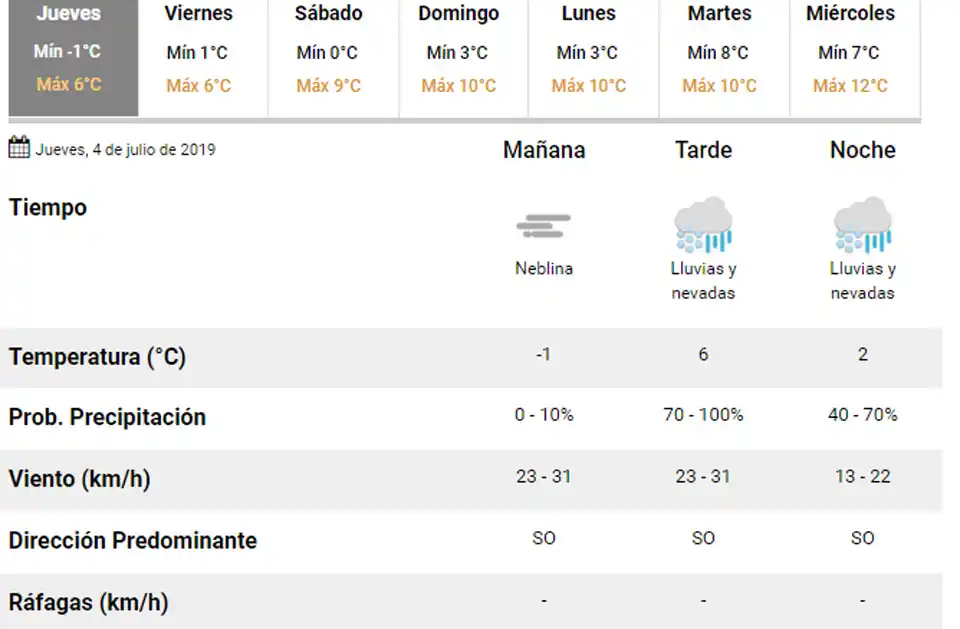 Según el Servicio Meteorológico Nacional este jueves a la tarde noche y en la mañana del viernes podrían producirse algunas nevadas.