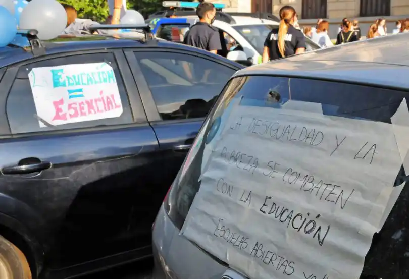 Accedé a las últimas noticias desde tu emailLos vehículos se movilizaron con banderas y globos y pancartas que visibilizaron su reclamo tales como “Ir al cole es esencial”, “Sin escuelas hay secuelas” o “sin educación no hay futuro”.