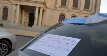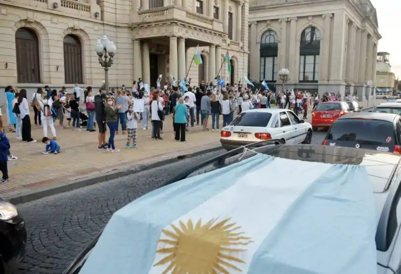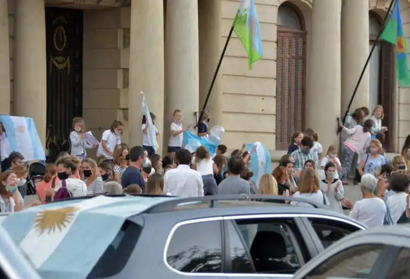Por un lado, decenas de autos en caravana llegaron hasta el Municipio y con bocinazos hicieron oír el reclamo. A su vez, padres, niños y algunos docentes con palmas y carteles hicieron visible la protesta. Finalmente, se ubicaron todos en la explanada municipal donde durante algunos minutos continuaron con el reclamo, con globos, banderas y algunas pancartas.