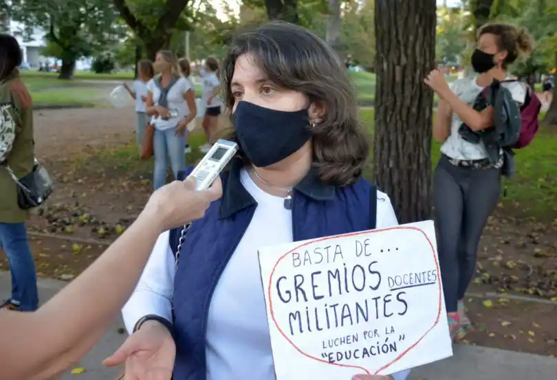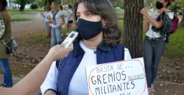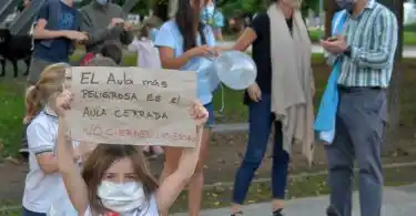 En tanto, una de las pancartas que sostenía una de las manifestantes decía: “basta de gremios docentes militantes. Luchen por la educación”. “No dañen más a los chicos, el aula más peligrosa es el aula cerrada”, expresaba otro de los carteles que llevaba una de las niñas que participaba de la movilización. “Quiero ir a la escuela, es mi derecho”, exponía la pancartas que llevaba otro de los niños.