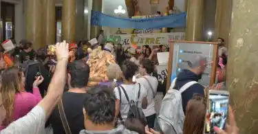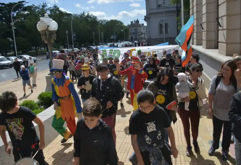 Los convocados se empezaron a congregar antes de las 11 en la Plaza Independencia y, con repiqueteo de tambores de por medio, una vez que estuvieron todos se dispusieron a movilizarse. Mientras tanto las chicas de Territorio Cultural juntaban firmas de apoyo a la causa, una iniciativa que pensaron ni bien comenzó el conflicto.