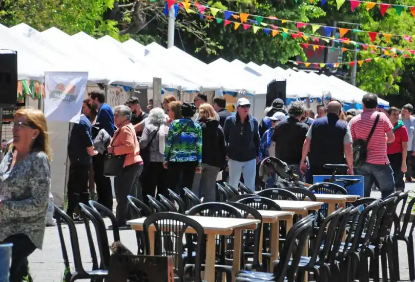 Bajo el sol que augura una promisoria jornada primaveral pese al viento, la gente comenzó a circular desde temprano por la zona para recorrer los stands y puestos de comida ya acomodados para la ocasión.