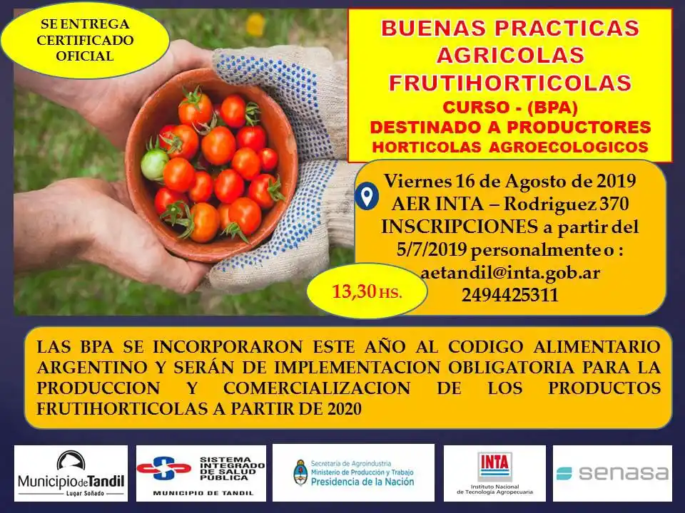 Desde la organización del curso de Buenas Prácticas Agrícolas (BPA) recordaron que quedan pocos días para poder sumarse a la capacitación que será llevada a cabo el próximo 16 de agosto en las instalaciones del INTA Tandil, en Rodriguez 370, a las 13.30.