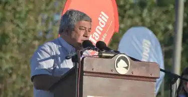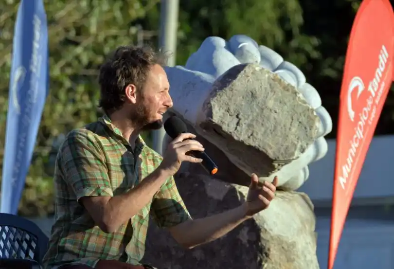 Si bien destacó esos cinco caminos en nombre de Amalia, Charo, Amanda, Lautaro y Victoria, que confluyen en la obra, el presidente de Ferrocarril Sud redobló la apuesta y propuso reflexionar que esos senderos llevan pensamientos divergentes, que se van a poner de acuerdo para desembocar en un solo lugar y unirse en un fuerte macizo como esa escultura de piedra, para enfrentar los tiempos difíciles que atraviesa el país.