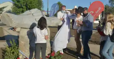 Estos últimos, con lágrimas que traspasaron a todos los presentes, descubrieron la figura de piedra maciza para luego cerrar el evento al son del clásico tango “Balada para un loco”.