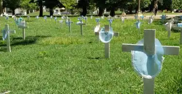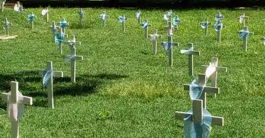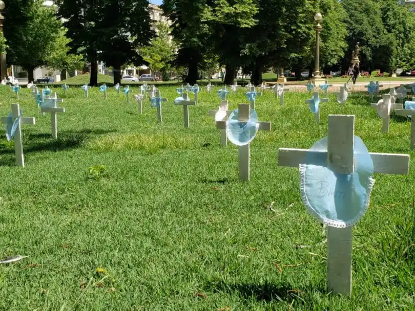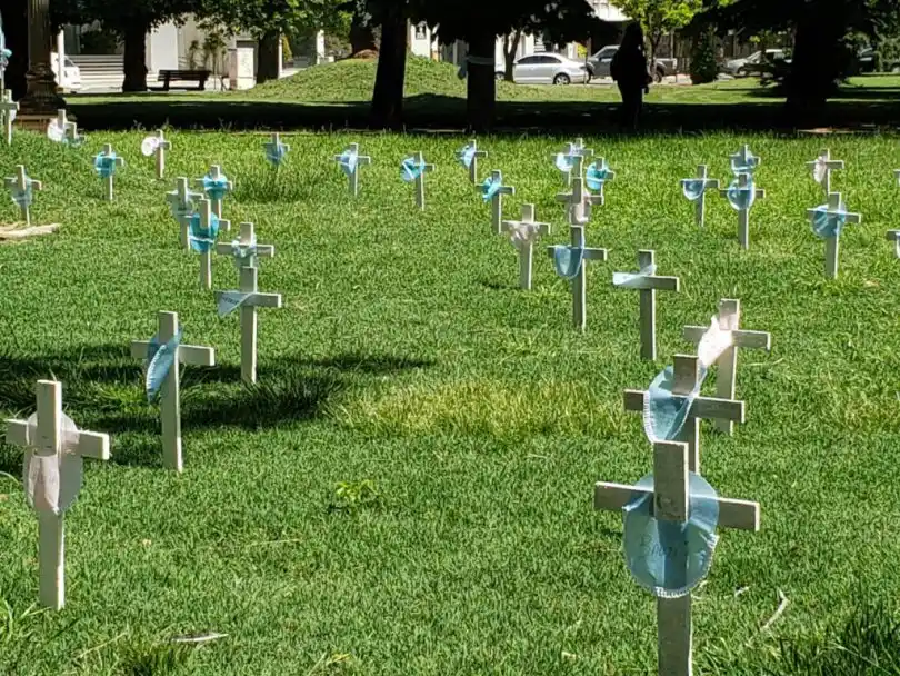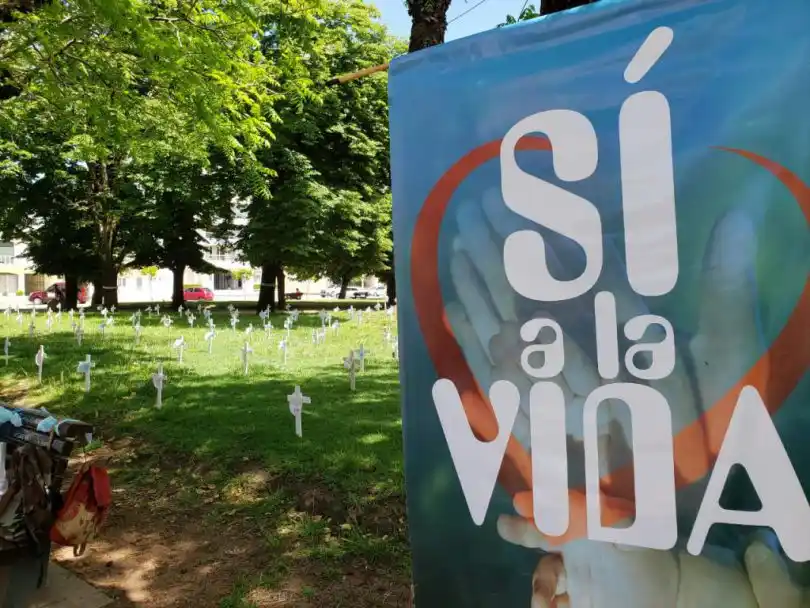 Desde la agrupación Más Vida Tandil se manifestaron frente a la Municipalidad con cruces, baberos de bebés abortados y pañuelos para “homenajear a los niños no nacidos”.