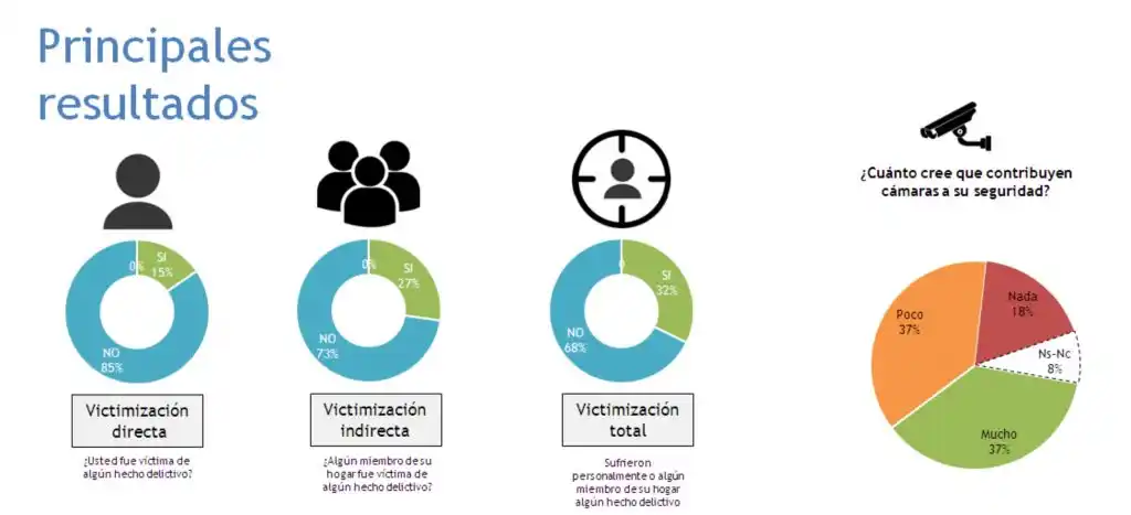 Si bien la información es diversa y amplia, apuntando fundamentalmente a ubicar geográficamente en los puntos donde se evidencia mayor victimización o percepción de inseguridad (ver recuadro), el sondeo puntualmente consultó a los entrevistados sobre las cámaras de seguridad.