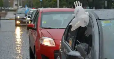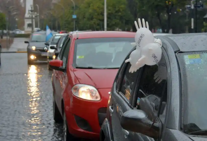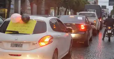 Los vehículos llevaban globos y carteles con consignas como “Lo esencial es invisible a los ojos de Lunghi”, o “Insalubridad, 6 horas, 25 por ciento de aumento”.